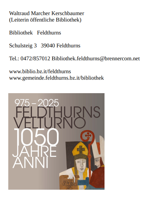 Bibliothek Feldthurns <bibliothek.feldthurns@brennercom.net> |