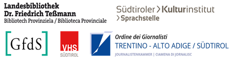 Eine Veranstaltung der Gesellschaft für deutsche Sprache/Zweig Bozen und der Sprachstelle im Südtiroler Kulturinstitut in Zusammenarbeit mit der Landesbibliothek Dr. Friedrich Teßmann, der Journalistenkammer Trentino-Südtirol und der VHS Südtirol
