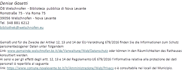 Denise Gosetti <bibliothek@welschnofen.eu> |
