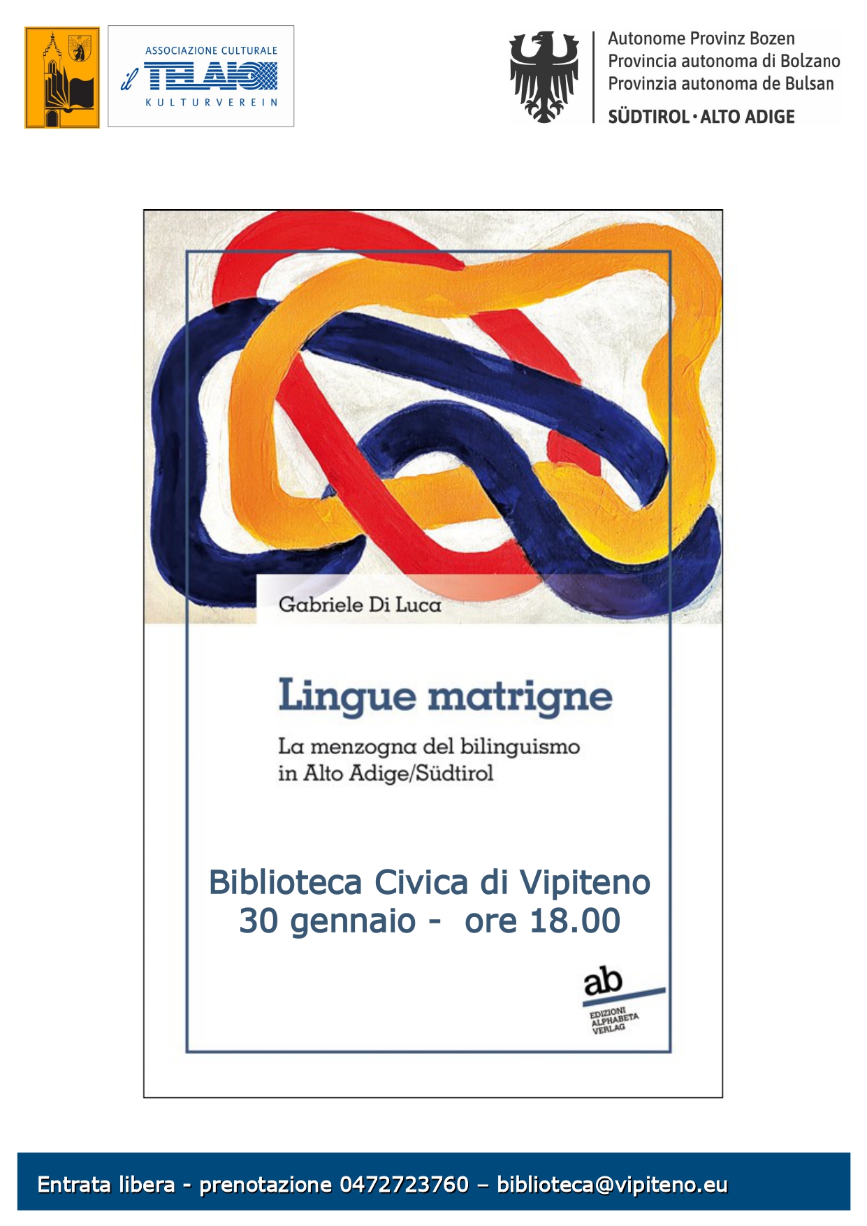 | Subject: | INVITO - EINLADUNG - Gabriele Di Luca presenta il libro "Lingue matrigne" - 30/01/26 |