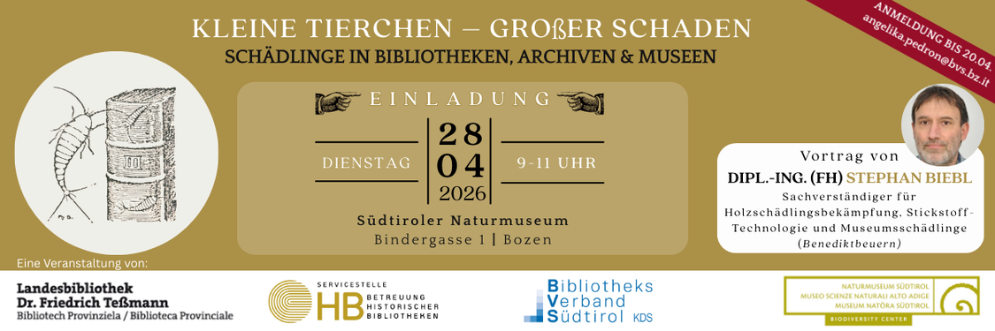 | Subject: | EINLADUNG: Bücher- und Museumsschädlinge | Vortrag von Dipl.-Ing. FH Stephan Biebl am 28. April 2025 |